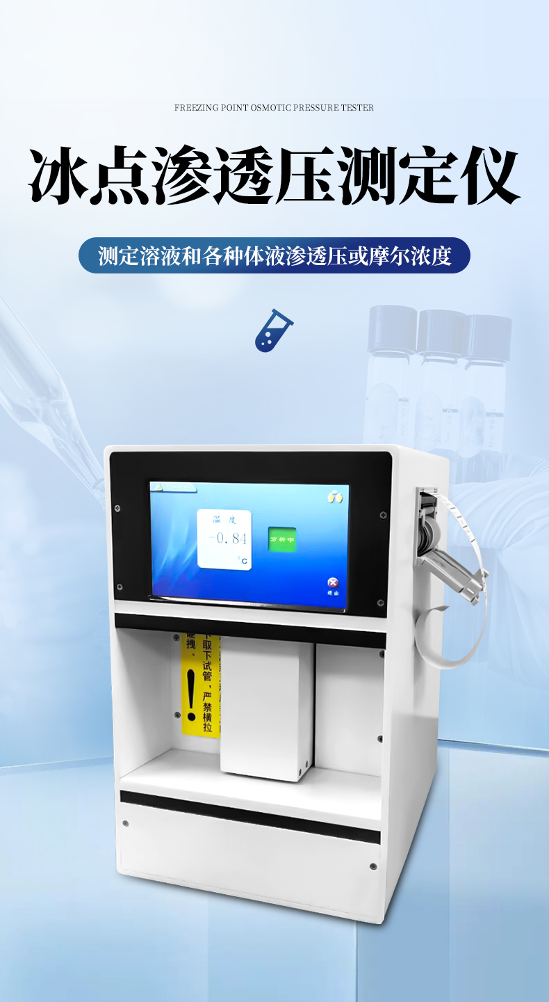 滲透壓測定儀是根據拉烏爾冰點理論,以溶液冰點下降值與溶液的摩爾濃度成比例關系為基礎,采用高靈敏的感溫元件測量不同溶液的冰點,進而得出所測溶液的滲透壓摩爾濃度。廣泛應用于制藥、藥物分析、生物、食品醫療等領域的滲透壓摩爾濃度的測試及研究。