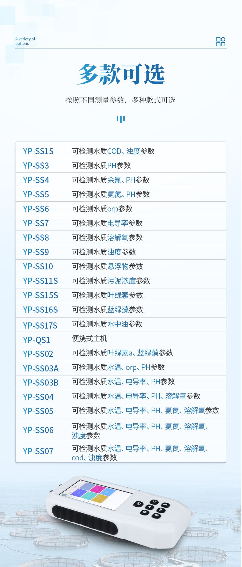| 16 | 葉綠素 | 0~400ug/L | 熒光法 | R2>0.999 |