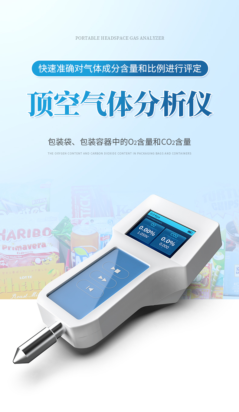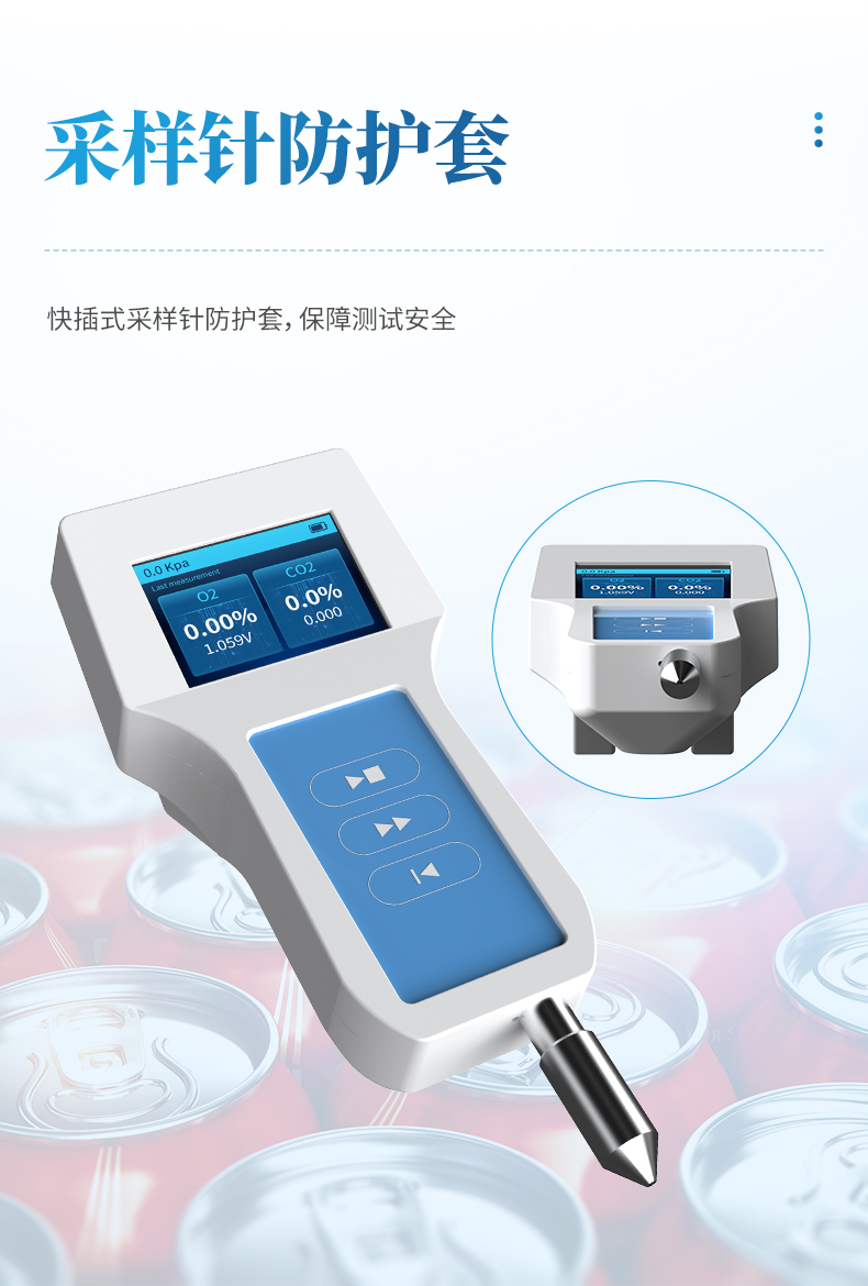 2.包裝容器:適用于罐裝咖啡、罐裝奶粉、罐裝食品、奶酪、罐頭、利樂包裝、飲料等包裝容器內氣體中的O2含量和CO2含量的測試;