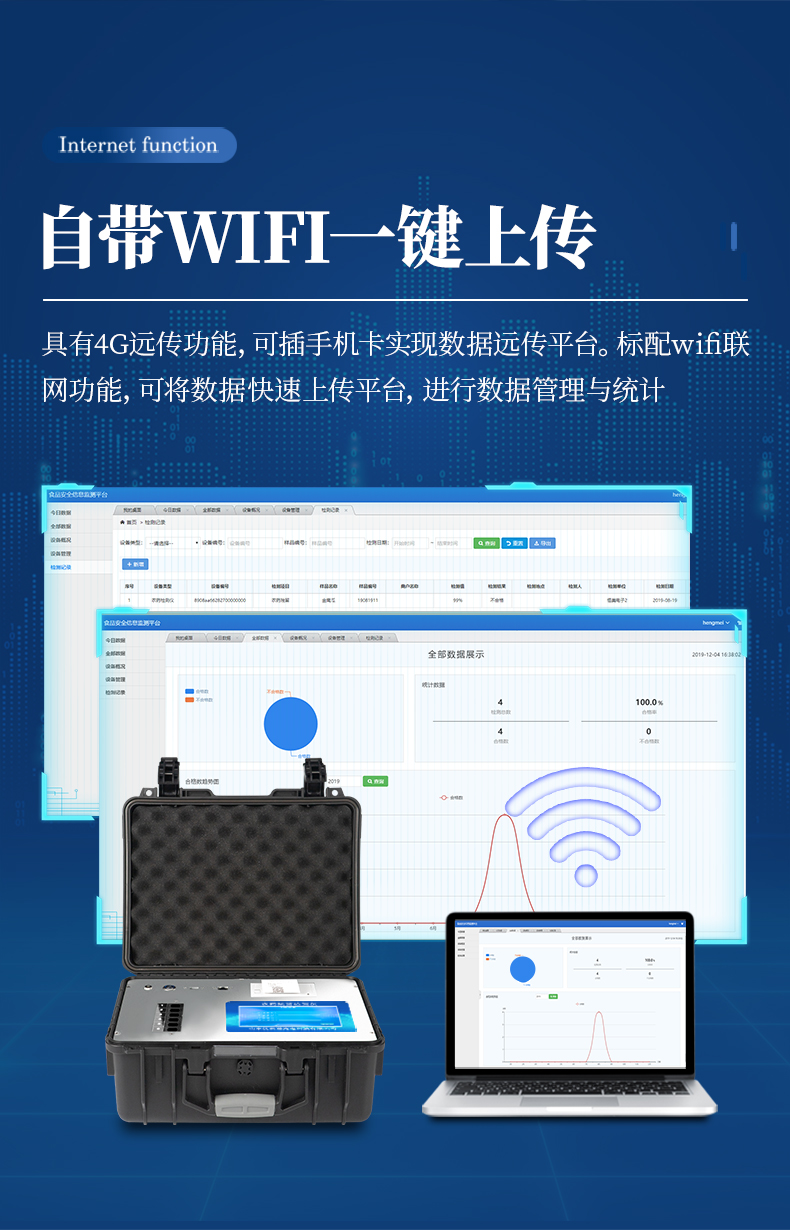 11、儀器具有4G遠傳功能,可插手機卡實現數據遠傳平臺。標配wifi聯網功能,可將數據快速上傳平臺,進行數據管理與統計。