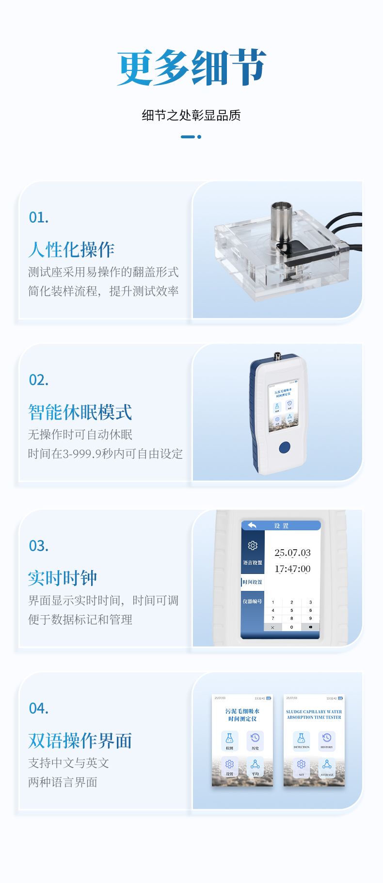 高精度測(cè)量:測(cè)量精度高達(dá)0.1秒,能夠精準(zhǔn)捕捉污泥脫水特性的細(xì)微變化。
