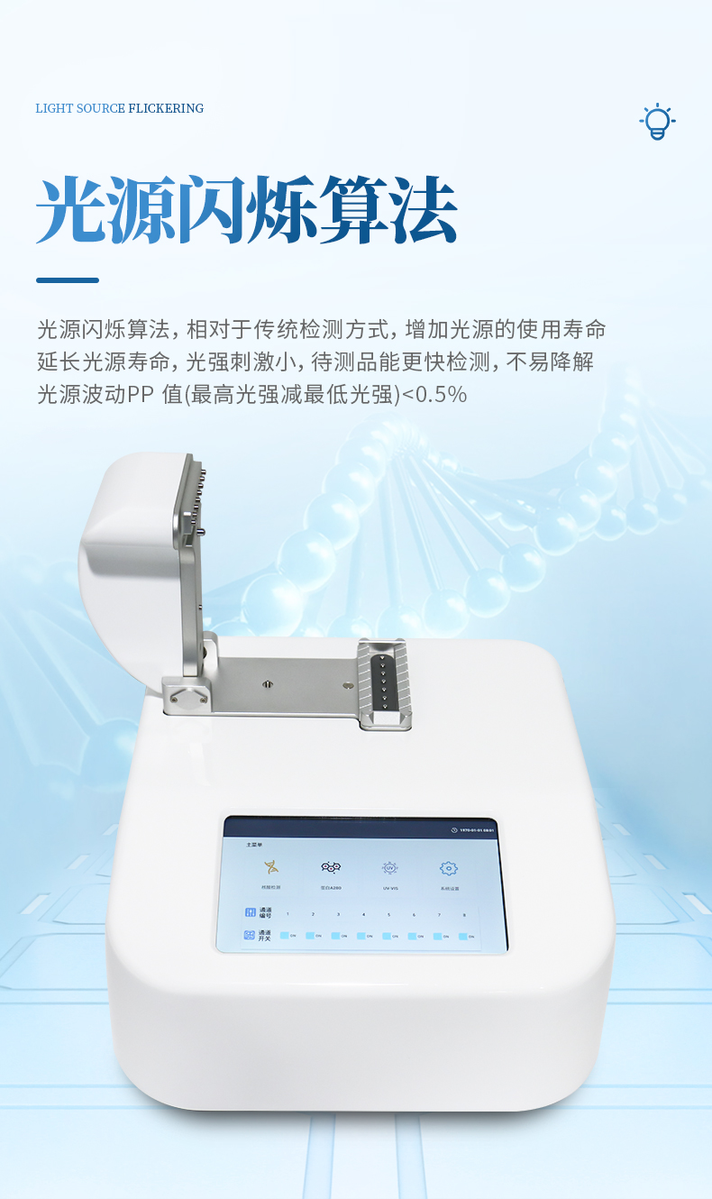 ●光源閃爍:光源閃爍算法、相對于傳統檢測方式,增加光源的使用壽命。延長光源壽命,光強刺激小,待測品能更快檢測,不易降解;