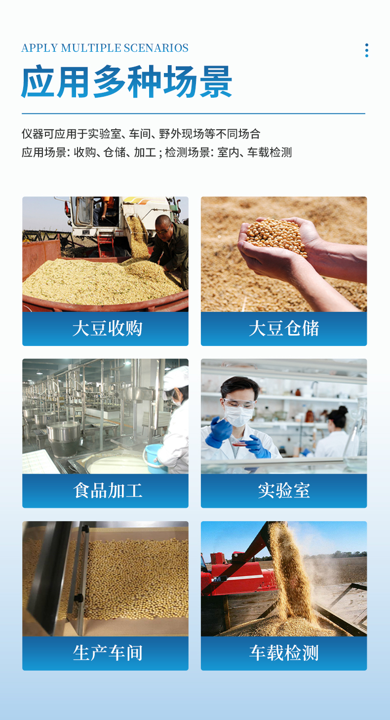 便攜式大豆蛋白儀可適用于大豆的收購、儲(chǔ)存、加工等多個(gè)環(huán)節(jié)的