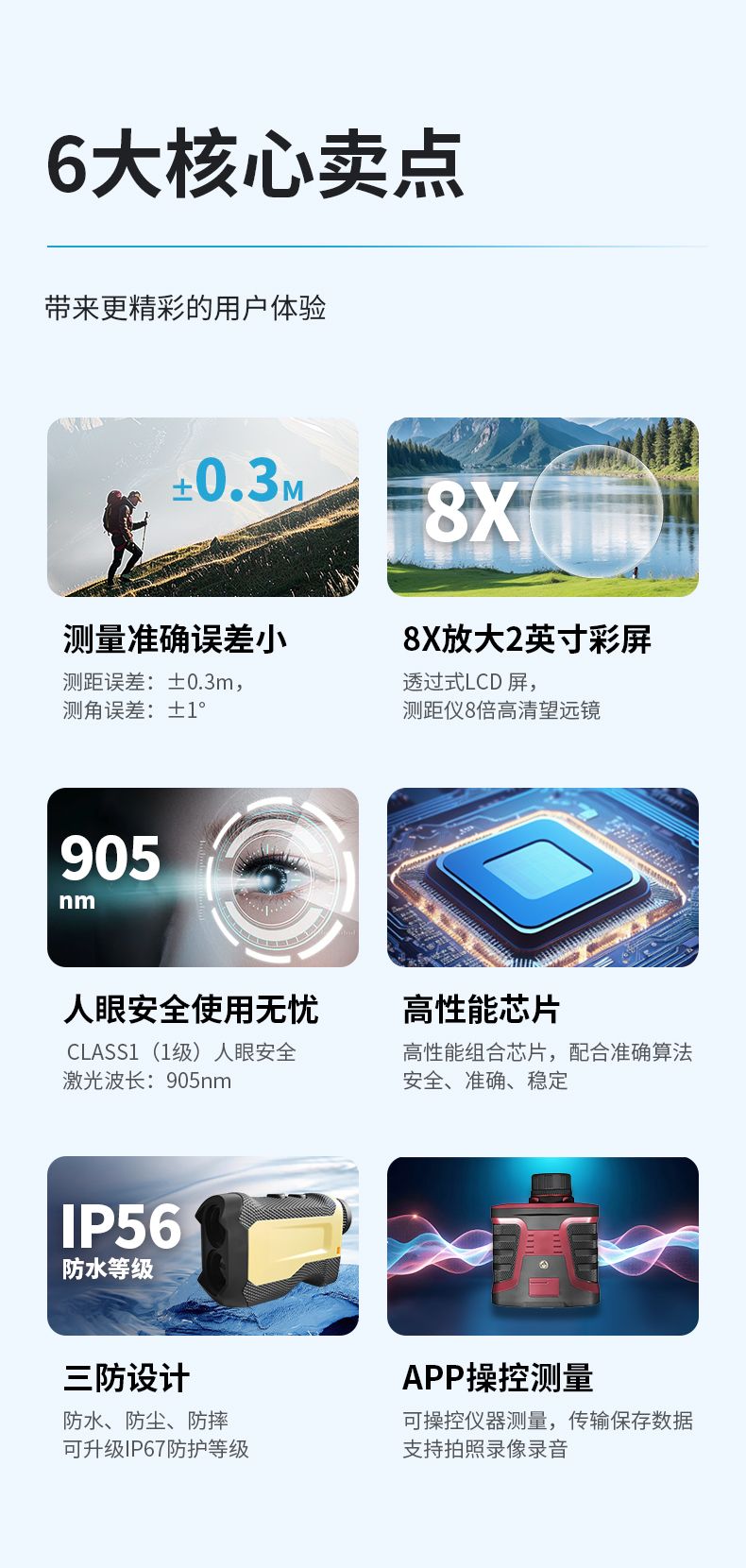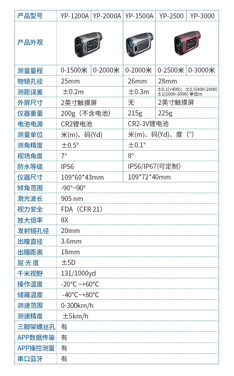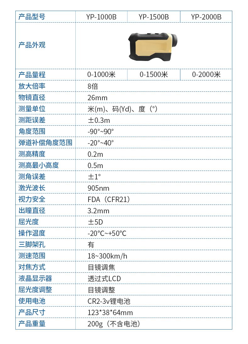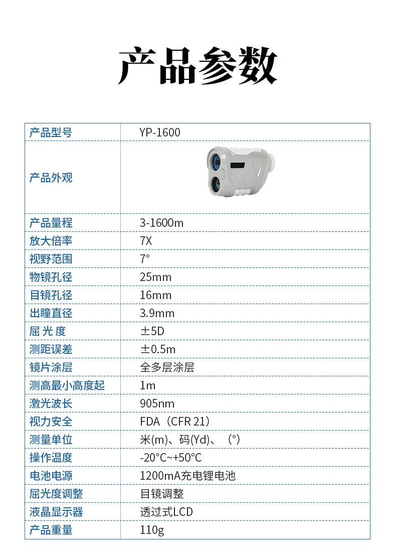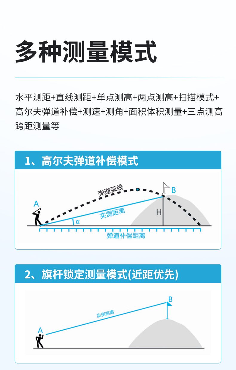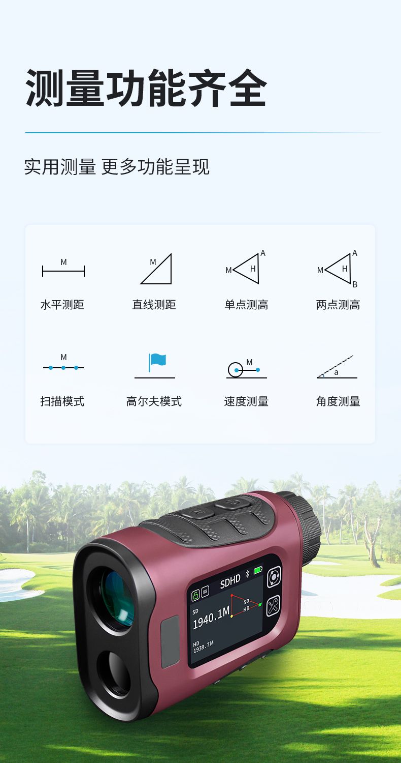產品功能:測距/測角/測速/高爾夫彈道距離/兩點測高