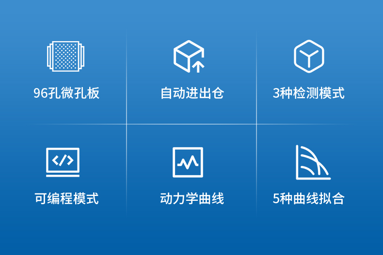 優云譜系列多功能微孔板分析儀是基于創新的線性PMT檢測技術和雙激發光源補償技術相結合而設計的一款高靈敏度、高動力學范圍和高線性度的微孔板閱讀儀。根據不同配置,可以實現化學發光(CLIA)、光激化學發光(LiCA)和時間分辨熒光(TRF)三種檢測模式。可靈活配置1到3種檢測模式,為研究人員提供一種靈活的解決方案。