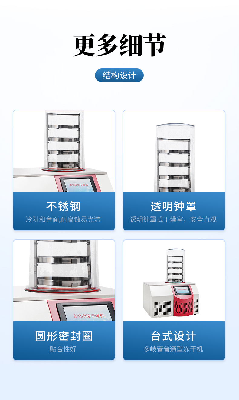 ★2.1操作采用彩色7寸液晶觸摸屏操作,無操作按鍵。液晶顯示,并能夠同時以數字和曲線方式顯示樣品溫度、冷阱溫度、真空度等工作參數;
