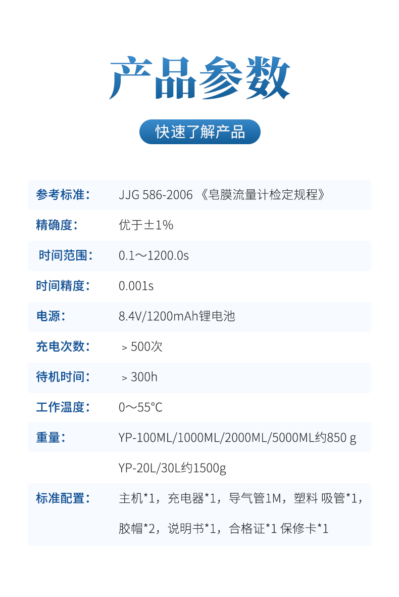 電子皂膜流量計用于測定氣體體積流量,屬于一級流量計,精度優于±1%。