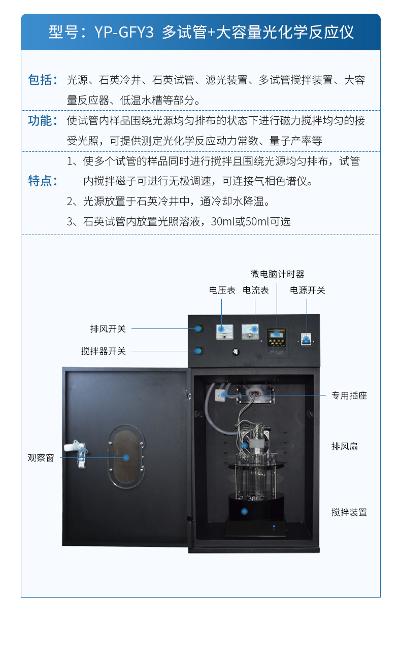 1.光化學(xué)反應(yīng)儀智能微電腦控制,可觀察電流和電壓實時變化