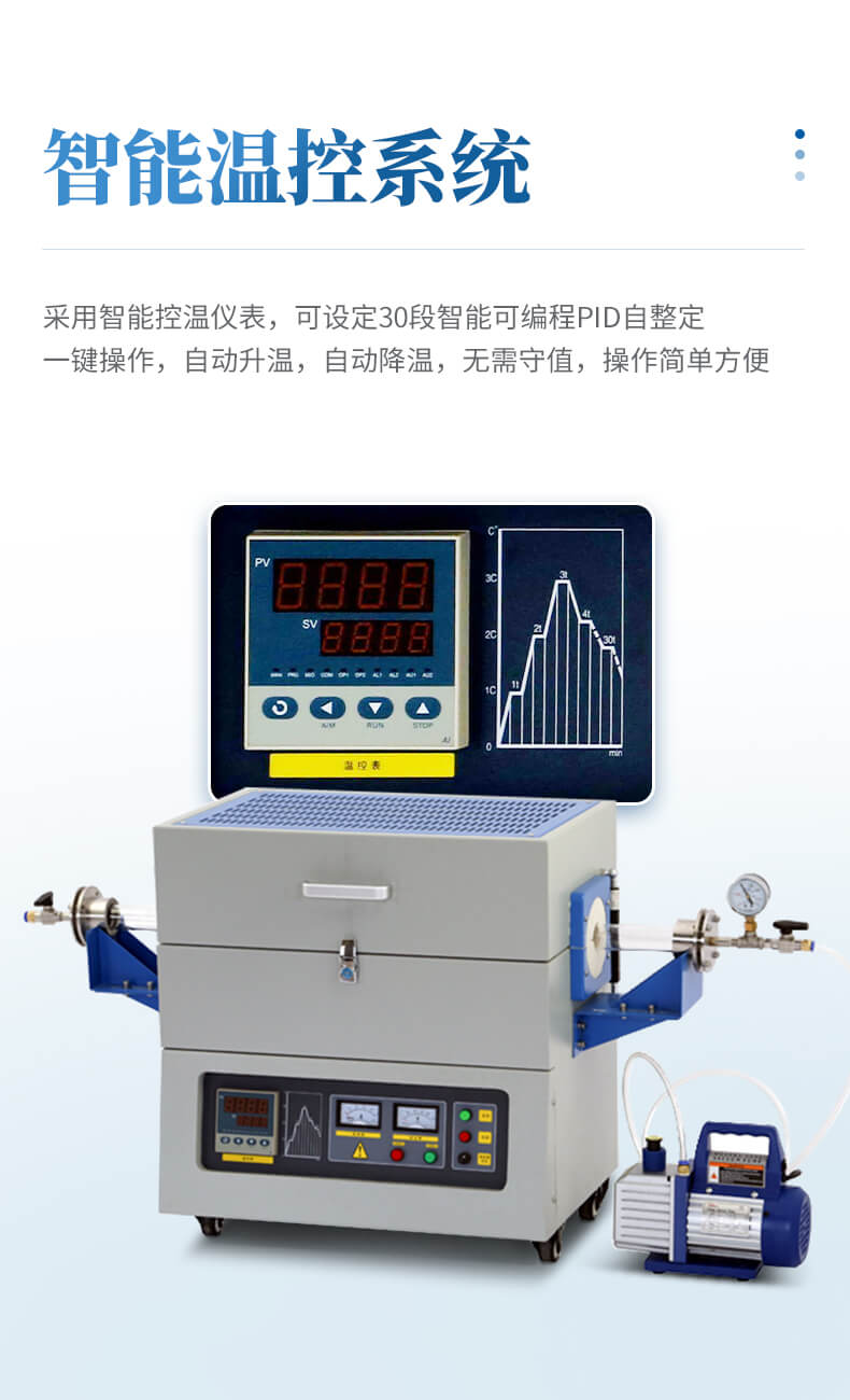 | 溫度控制 | 采用國內(nèi)宇電儀表廠家的智能控溫儀表,可設(shè)定 30段智能可編程PID自整定,一鍵操作, 自動升溫, 自動降溫,無需守值,操作簡單方 便。 |