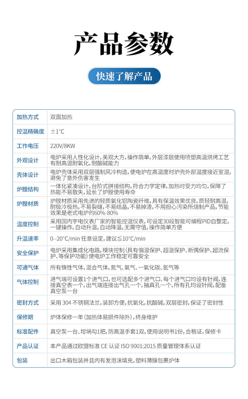 用于高校、科研院所、工礦企業(yè)做高溫氣氛燒結(jié)、氣氛還原、CVD實(shí)驗、真空退火等。