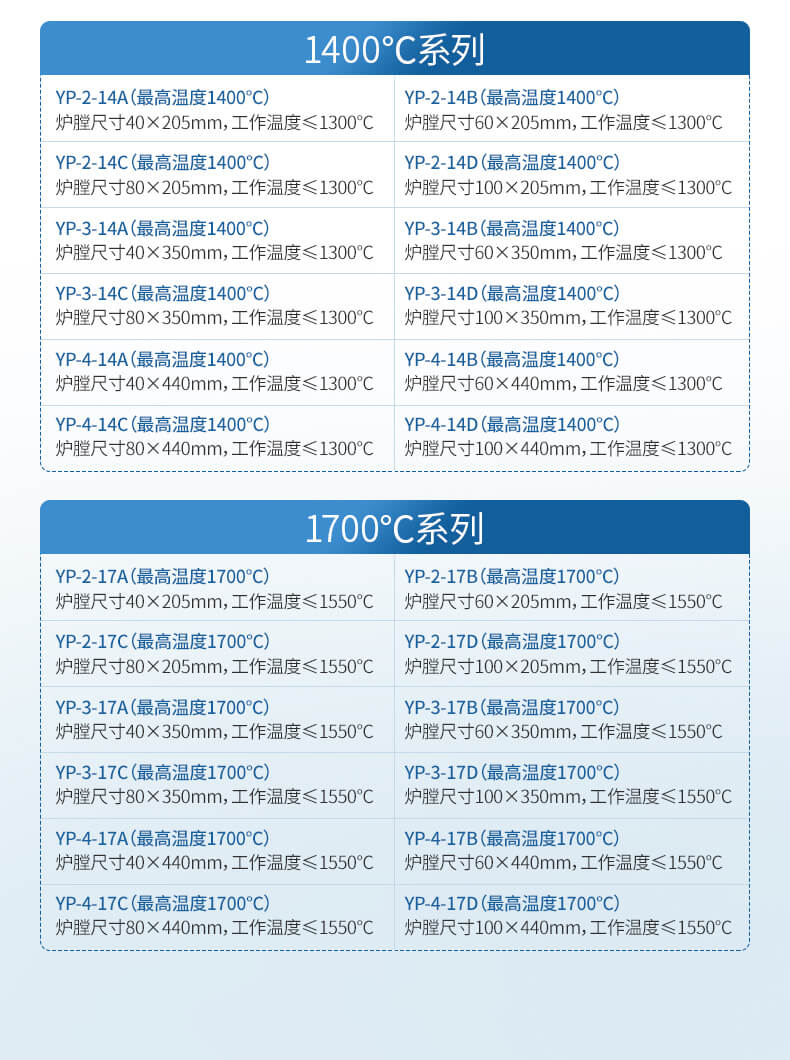 | 最高溫度 | 1700℃ |