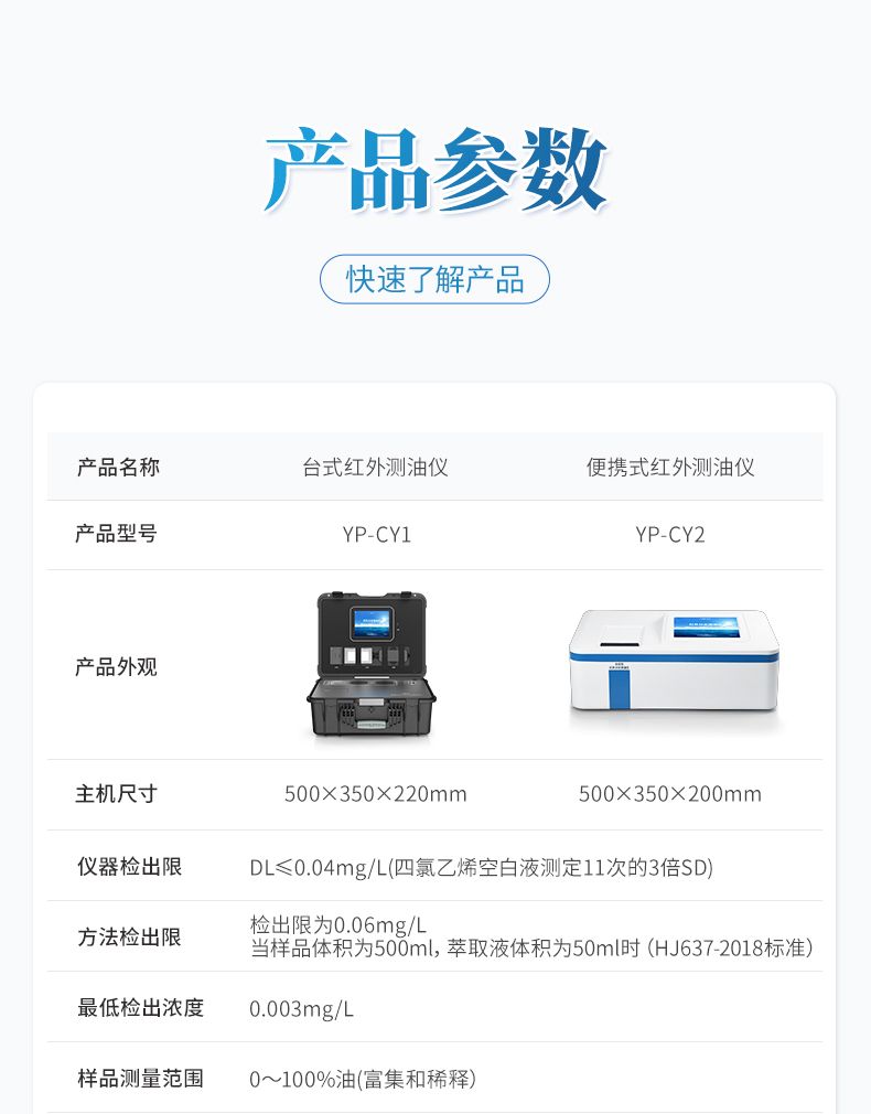 紅外分光測油儀是根據中國環境保護標準《HJ637-2018水質石油類和動植物油的測定 紅外分光光度法》、《HJ1051-2019土壤石油類的測定 紅外分光光度法》、《HJ1077-2019固定污染源廢氣 油煙和油霧的測定 紅外分光光度法》進行研發制造,該儀器主要檢測地表水、地下水、工業廢水、土壤、固定污染源廢氣、油煙和油霧中含油量測定的專用紅外光譜分析儀器。