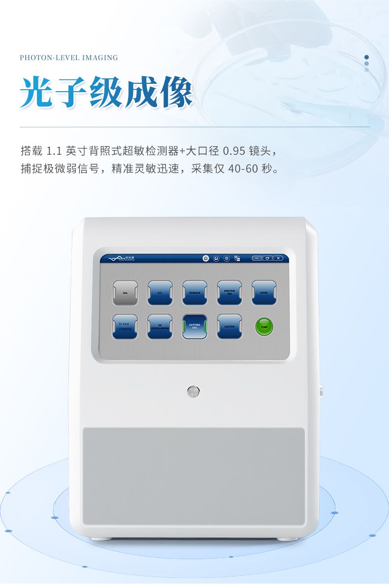 采用獨(dú)特的光子級成像技術(shù)、超低降噪處理技術(shù),結(jié)合大耙面背照式超敏檢測器以及大通 光透鏡,使得極微弱信號捕捉變的更容易。靈敏度遠(yuǎn)超同類產(chǎn)品,成像效果更好,采集速 度提升 2-3 倍(原需 2 分鐘,現(xiàn)僅 40-60 秒),避免科研成果錯(cuò)失。我司研發(fā)的新一代 超敏化學(xué)發(fā)光成像系統(tǒng)完全可替代進(jìn)口同類產(chǎn)品。