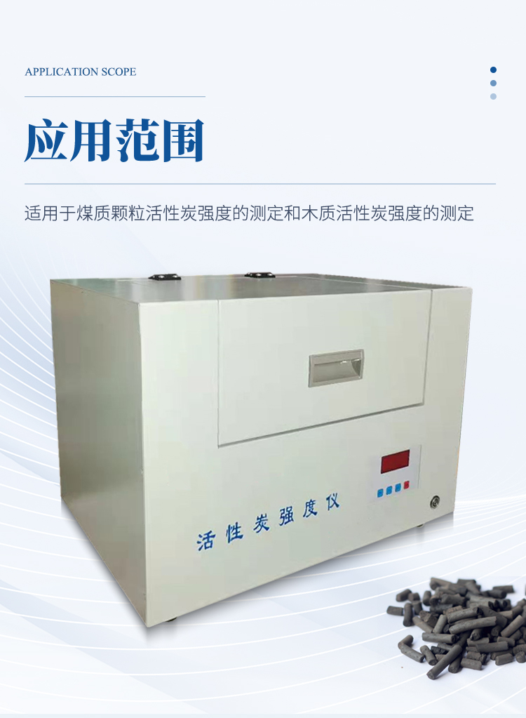 活性炭強度測定儀是按照GB/T7702.3-2008《煤質顆粒活性炭試驗方法 強度的測定》和GBT12496.6《木質性炭試驗方法 強度的測定》開發設計,適用于煤質顆粒活性炭強度的測定和木質活性炭強度的測定。