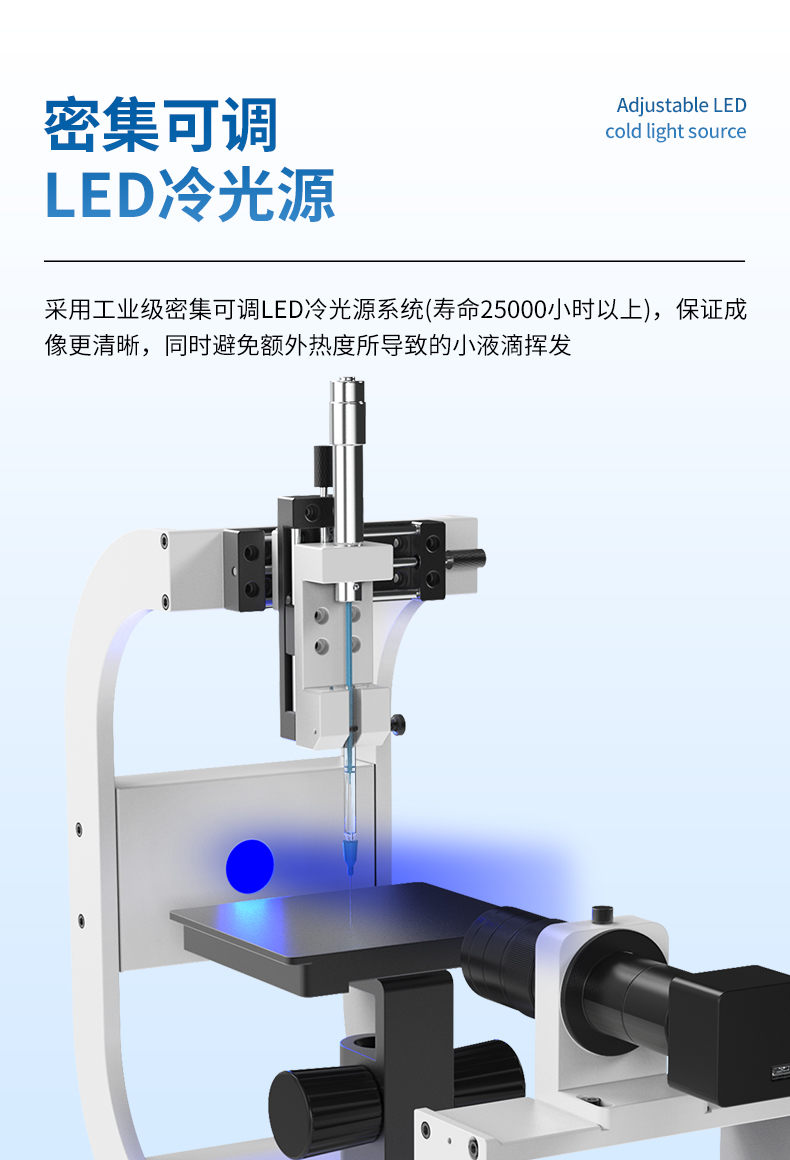 光學接觸角測量儀是測量液體對固體材料接觸角的儀器,主要用于表征液體對固體材料表面的潤濕性能,通過光學成像獲取液滴的圖像,利用計算機軟件,通過數學模型擬合出液滴圖像的輪廓并得到接觸角或表面張力,并進行表面能計算和潤濕性分析。