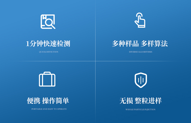 3、多樣:儀器采用多種不同算法搭配組合,可針對不同樣品特征切換不同模型檢測多種樣品。