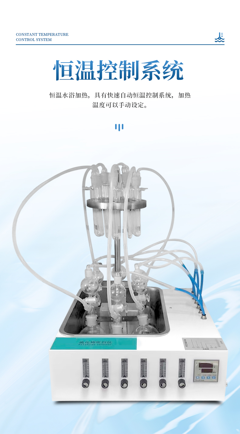 水質硫化物酸化吹氣儀根據水質硫化物的測定-亞甲基藍分光光度法(碘量法)標準開發生產的。滿足水質硫化物測定的樣品前處理需要。