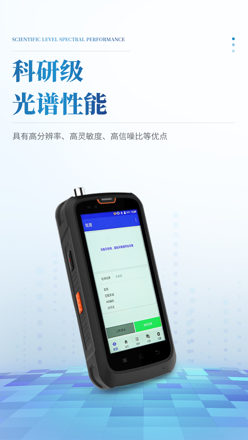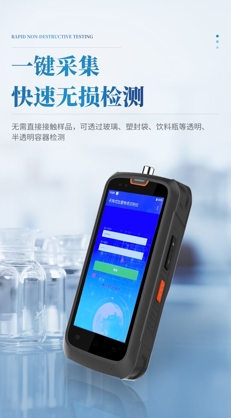 一鍵采集、快速無損檢測:無需直接接觸樣品,可透過玻璃、塑封袋、飲料瓶等透明、半透明容器檢測;