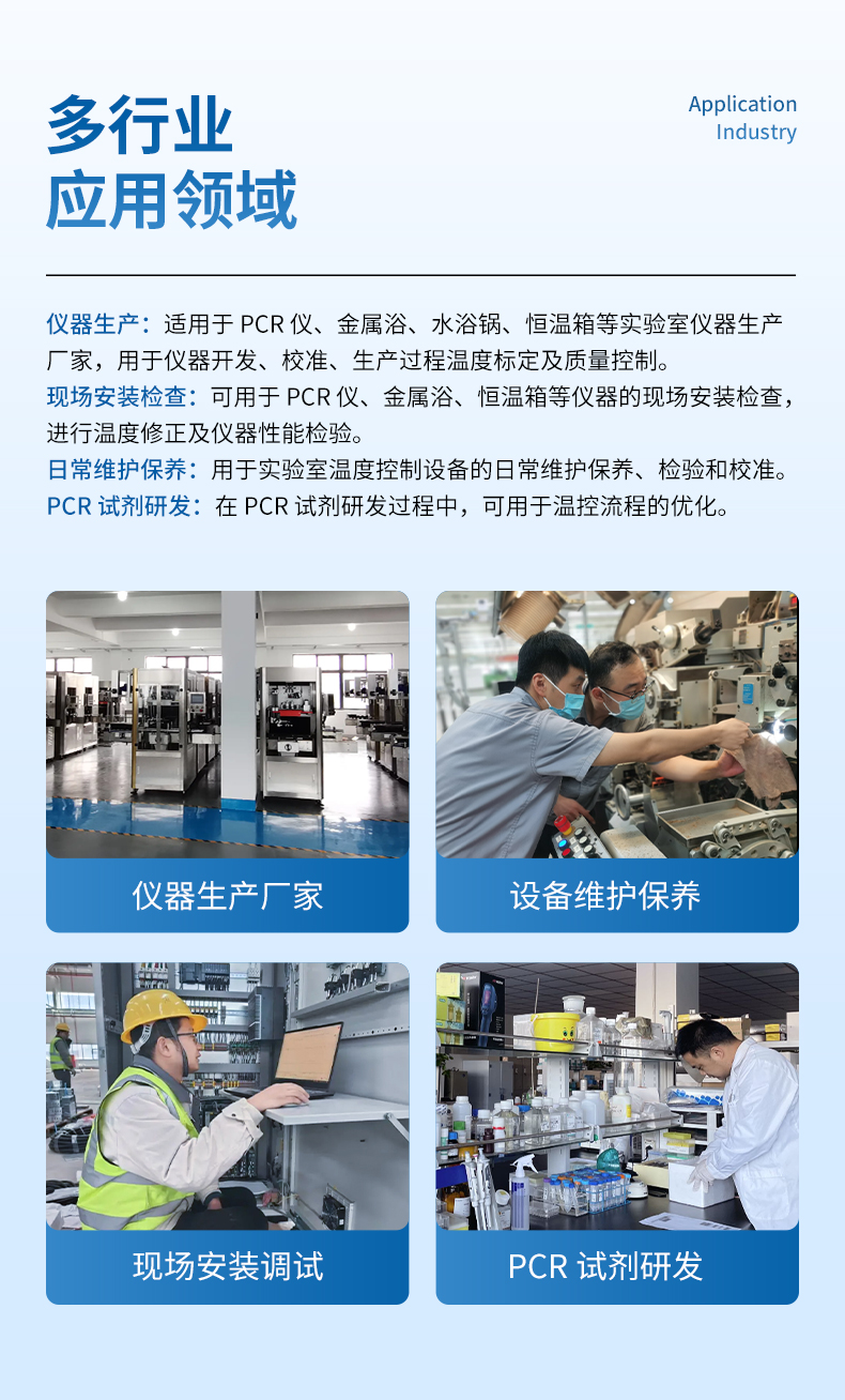 1) PCR儀,金屬浴,水浴鍋,恒溫箱等實驗室儀器生產廠家,用于儀器開發,校準,生產過程溫度標定及質量控制