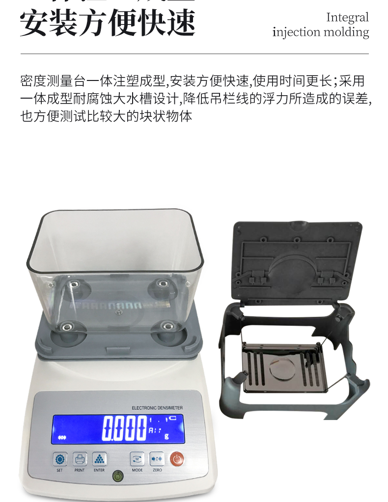 3.密度測量臺一體注塑成型,安裝方便快速,使用時間更長