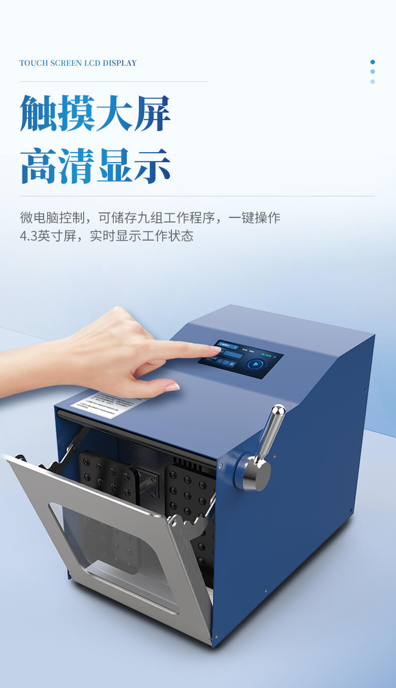 7. 帶有透明可視窗,方便觀察樣品均質效果。