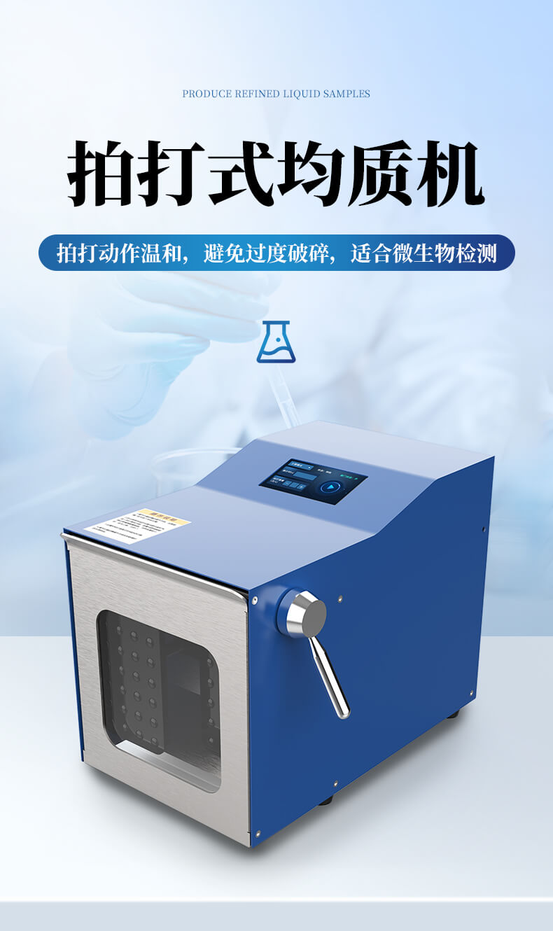 1. 拍打動作溫和,避免過度破碎,適合微生物檢測。