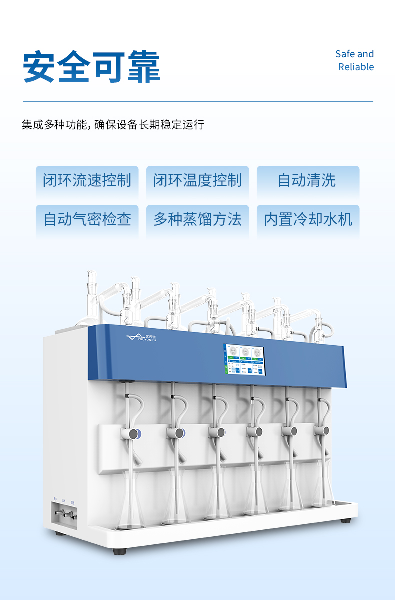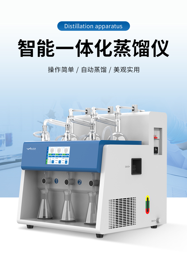 全自動一體化蒸餾儀是一款專為現代實驗室設計的智能、高效的高科技產品,旨在通過高度自動化和智能化的操作,顯著提升實驗效率與數據準確性。該蒸餾儀集成了先進的冷卻水循環技術、獨立多通道控制、以及7寸液晶觸摸屏控制、自動清洗、自動氣密檢查、反吹、遠程OTA系統升級等多項創新特性,為用戶提供了一站式的蒸餾解決方案。