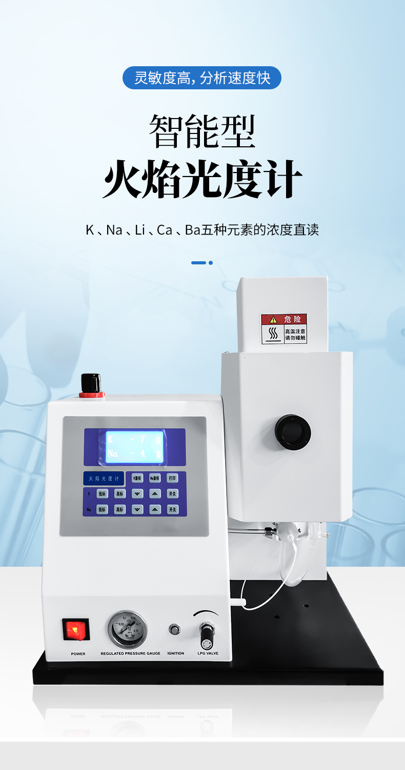 優云譜光電系列火焰光度計是按照發射光譜的基本原理而設計制造的分析儀器,廣泛應用于農業肥料、土壤、水泥、陶瓷等行業及硅酸工業的分析和測定;醫療衛生的病理研究。火焰光度計使用液化氣為燃氣。