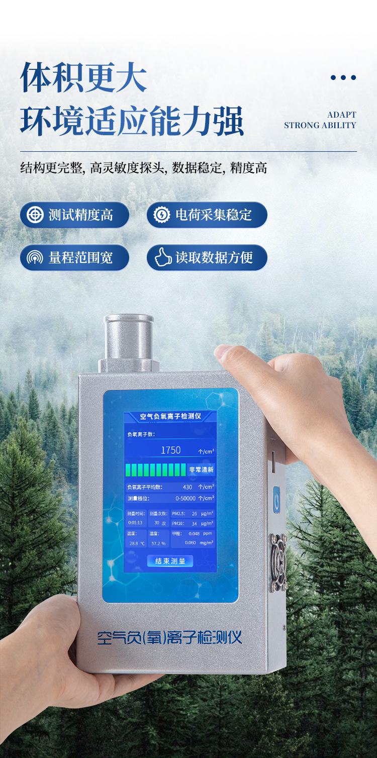 實時測量空氣中的大氣負氧離子濃度是環(huán)境監(jiān)測、納米涂料、負離子保健產(chǎn)品、負離子家裝建材、室內檢測、空氣治理、空氣凈化器及其制品負離子濃度的測量與演示的優(yōu)選工具。