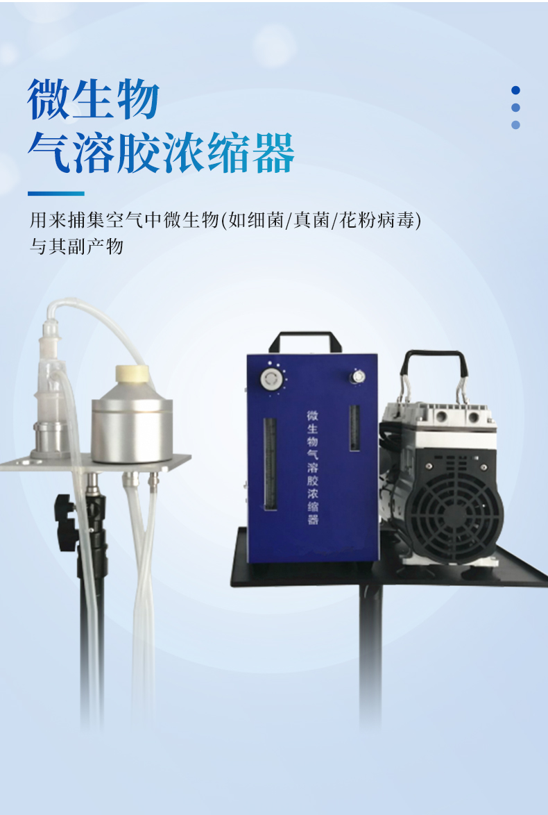 高效率玻璃沖擊瓶捕集裝置的特殊設計,它需要一臺高流量音速的空氣采樣幫浦, 用來捕集空氣中微生物(如細菌、真菌、花粉、病毒)與其副產物如內毒素、霉菌毒素及其他碎片,以供進一步分析。