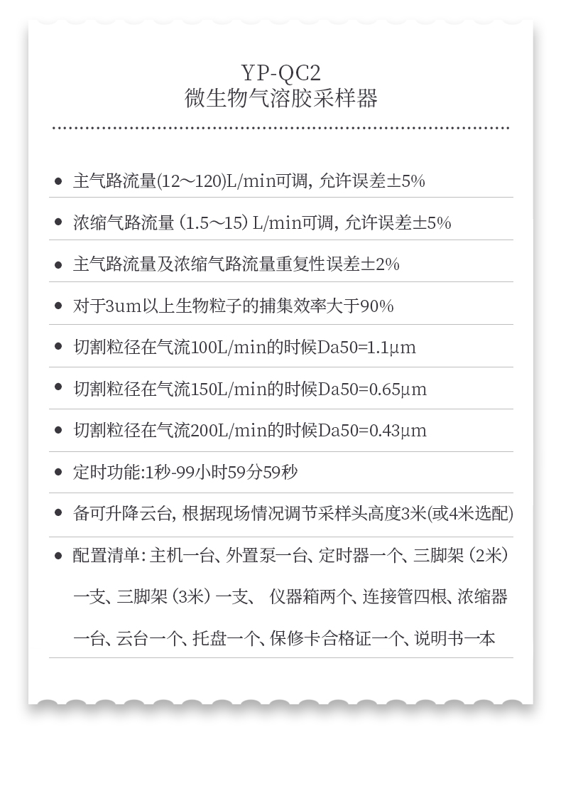 本產品符合標準《GB/T 18204.5-2013 公共場所衛生檢驗方法 第5部分:集中空調通風系統》和衛生行業標準《WS 394-2012 公共場所集中空調通風系統衛生規范》要求,采集集中空調送風,檢測其中的嗜肺軍團菌。采集流量大,使需要的粒子短時間濃縮到采樣器中,避免長時間采樣帶來的生物活性損失,提高采樣器的現場實用性。