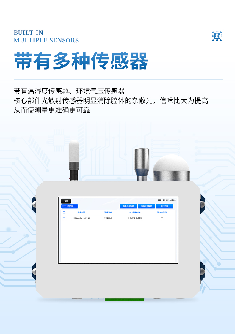 8、配置監(jiān)管平臺(tái),檢測(cè)結(jié)果可直接無(wú)線(xiàn)傳至云端,進(jìn)行潔凈度長(zhǎng)短期分析,輔助管理。