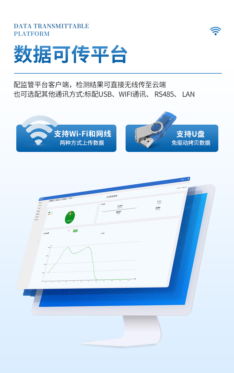 7、支持wifi、網(wǎng)線(xiàn)傳輸,數(shù)據(jù)可無(wú)線(xiàn)、有線(xiàn)上傳云平臺(tái);同時(shí)支持U盤(pán)拷貝數(shù)據(jù),免驅(qū)動(dòng)插拔。