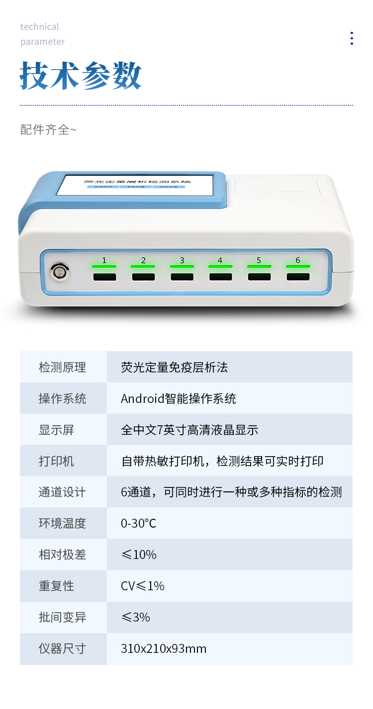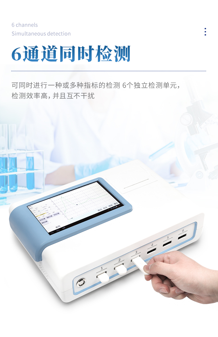 5、6通道設(shè)計,可同時進行一種或多種指標(biāo)的檢測,6個獨立檢測單元,檢測效率高,并且互不干擾;