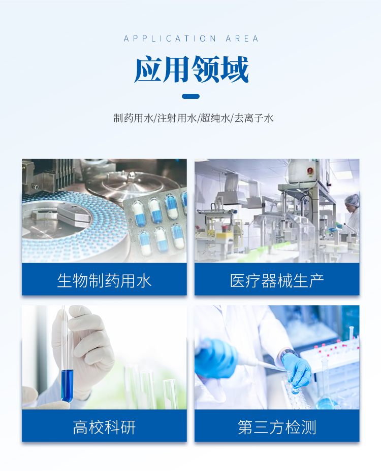 藥用水(純化水、注射用水)的離監(jiān)測和實(shí)驗(yàn)室測試,以及清潔驗(yàn)證;電子行業(yè)、食品行業(yè)等。