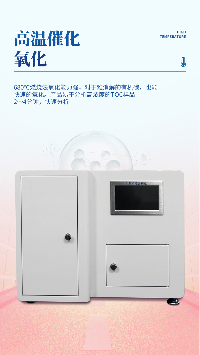 1.高溫催化氧化,對(duì)于難消解的有機(jī)碳,也能高效率的氧化,使得產(chǎn)品易于分析高濃度的TOC樣品;