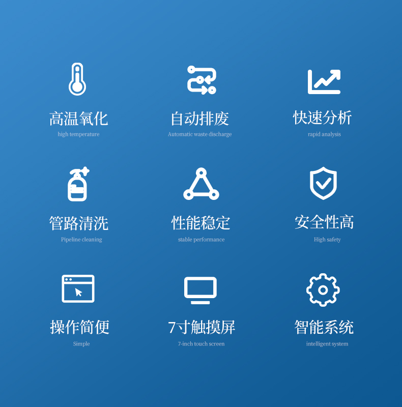 9.催化燃燒氧化法氧化能力強(qiáng),幾乎可以氧化所有的有機(jī)物且性能穩(wěn)定。680℃燃燒法幾乎是在所有鹽份的融點(diǎn)以下,這樣可以延長(zhǎng)催化劑和燃燒管的壽命,這一點(diǎn)尤其是在測(cè)定對(duì)象是含鹽份的水樣時(shí)很重要;