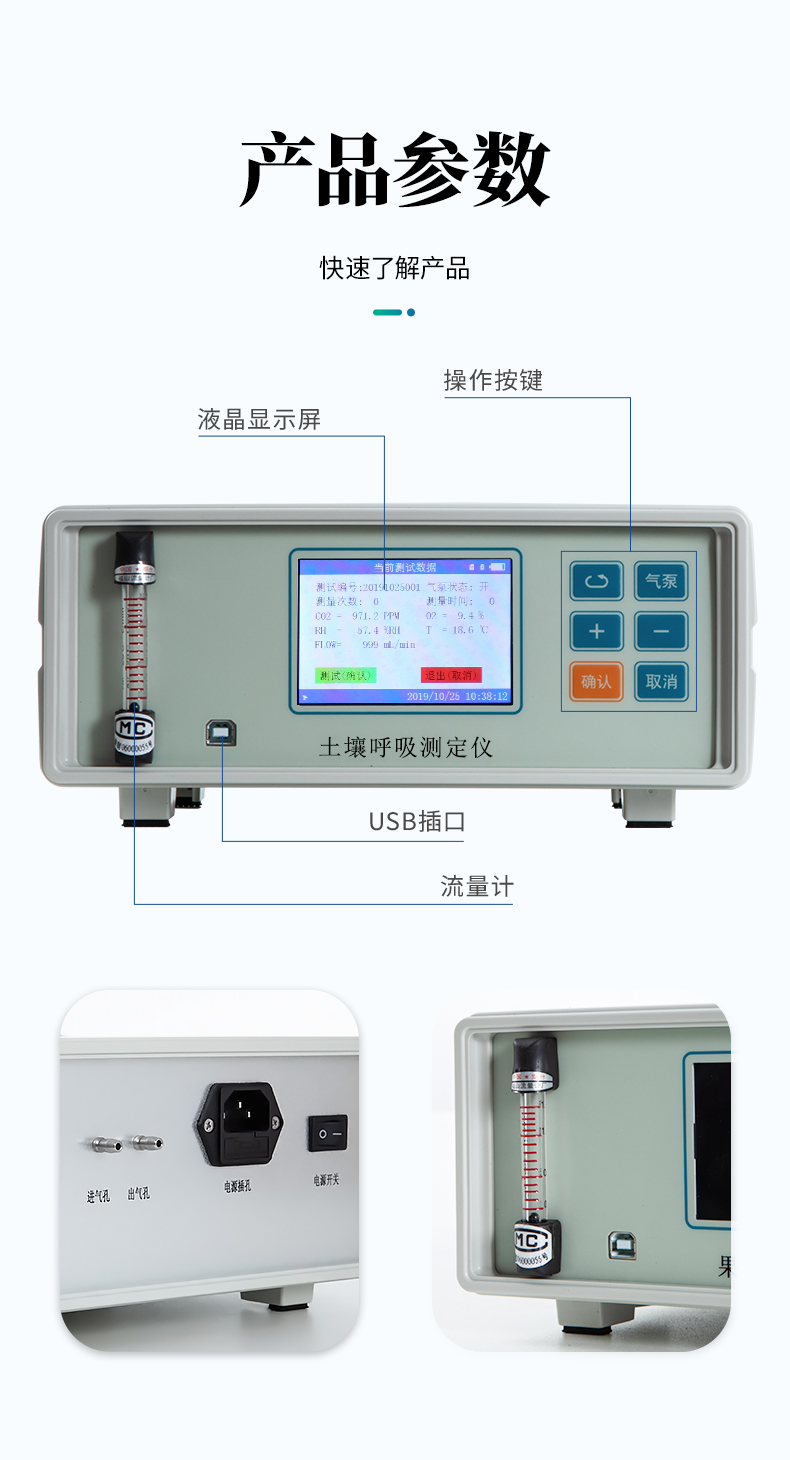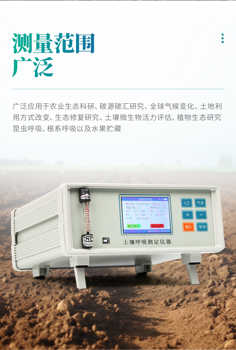 土壤呼吸是土壤生態系統碳素循環的一個重要過程,是土壤碳素同化異化平衡作用的結果,也是碳素由陸地生態系統返回大氣的主要途徑,是土壤中生命活動的表征,準確測定其釋放量是評價生態系統中生物學過程的關鍵;通過對土壤呼吸及其相關參數的監測,可估測根系和土壤微生物對氣候變化的響應。土壤CO2通量在時間和空間上受多種復雜物理和生物過程影響,長期、連續、準確的測量土壤碳通量,對陸地生態系統碳通量研究具有重要的意義。土壤呼吸測定儀可以同時顯示呼吸室內部的CO2濃度、溫度和濕度變化以及外部光合有效輻射強度。廣泛應用于農業生態科研、碳源碳匯研究、全球氣候變化、土地利用方式改變、生態修復研究、土壤微生物活力評估、植物生態研究、昆蟲呼吸、根系呼吸以及水果貯藏。