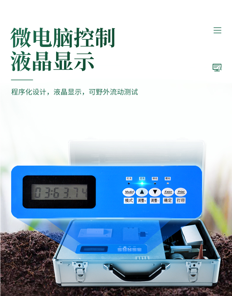 5、土壤養分速測儀采用高亮度 LED 燈作為光源, 硅半導體作為信號接收系統, 壽命長達10萬小時級別。光源穩定,一致性好。