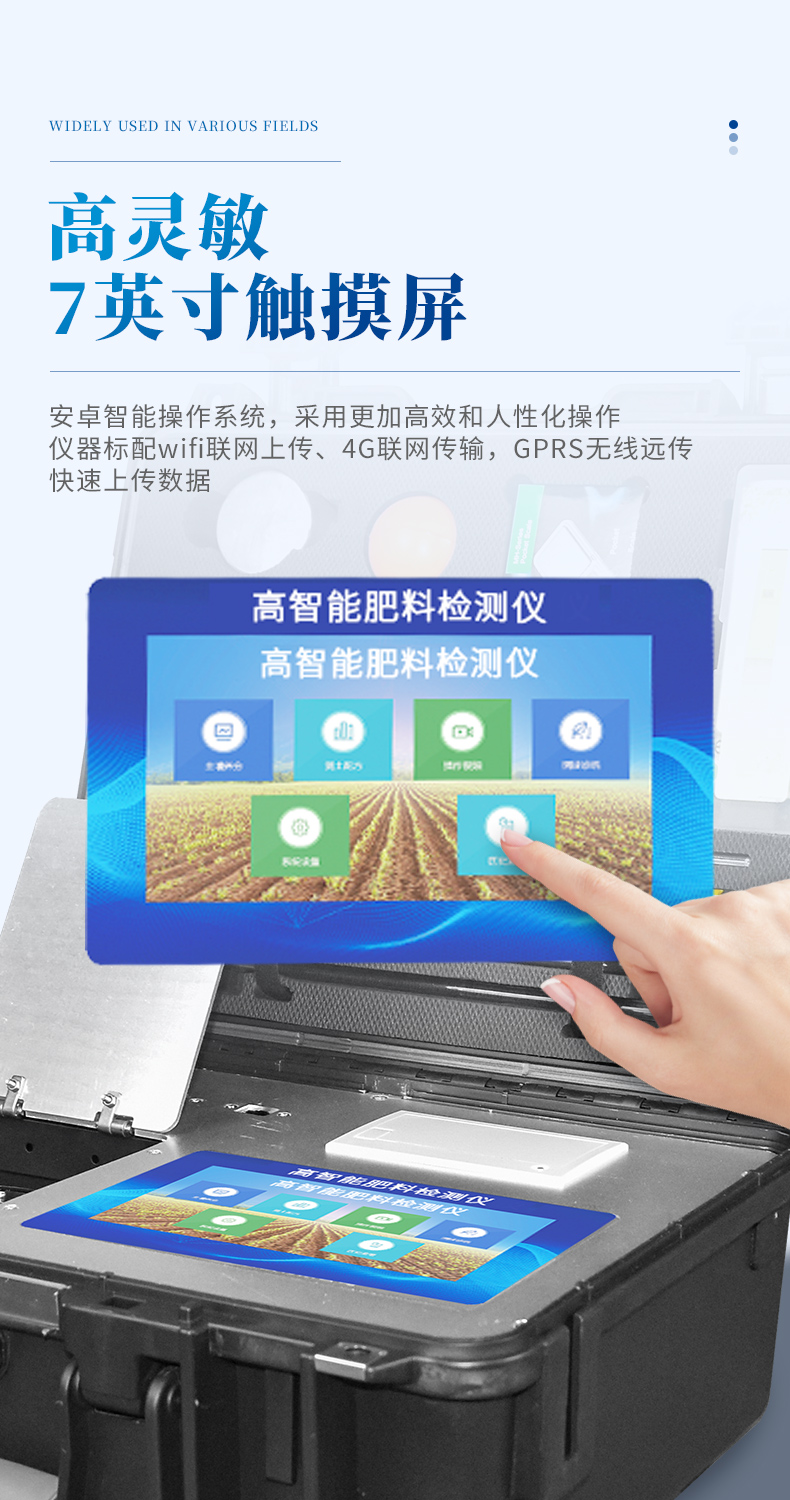 2、安卓智能操作系統(tǒng),采用更加高效和人性化操作,儀器標(biāo)配wifi聯(lián)網(wǎng)上傳、4G聯(lián)網(wǎng)傳輸、GPRS無(wú)線遠(yuǎn)傳,快速上傳數(shù)據(jù)。