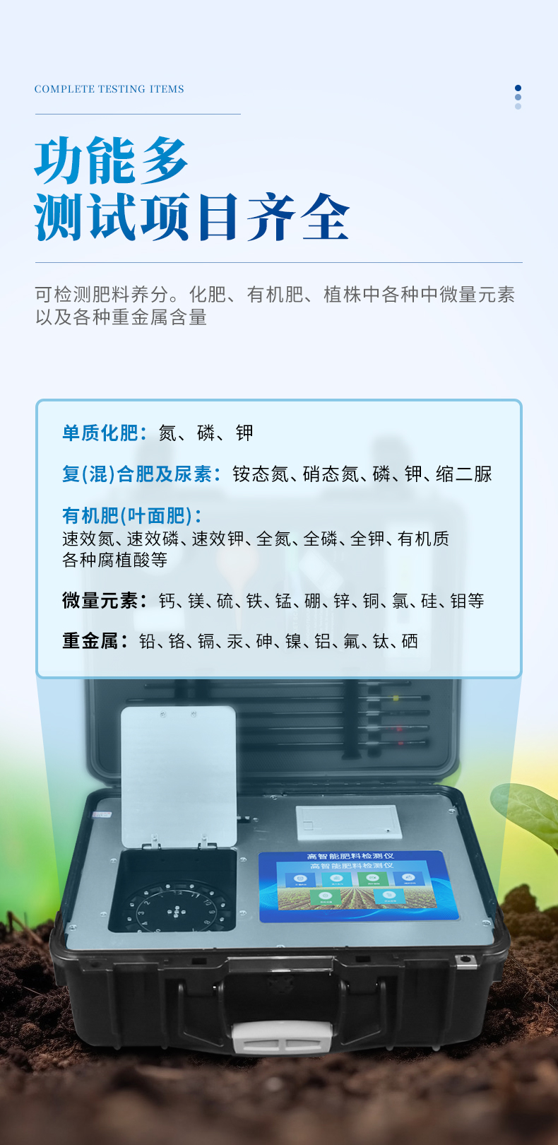 肥料養(yǎng)分專用檢測(cè)儀功能全:測(cè)試項(xiàng)目國(guó)內(nèi)外最全(各類藥劑均可選購(gòu))。