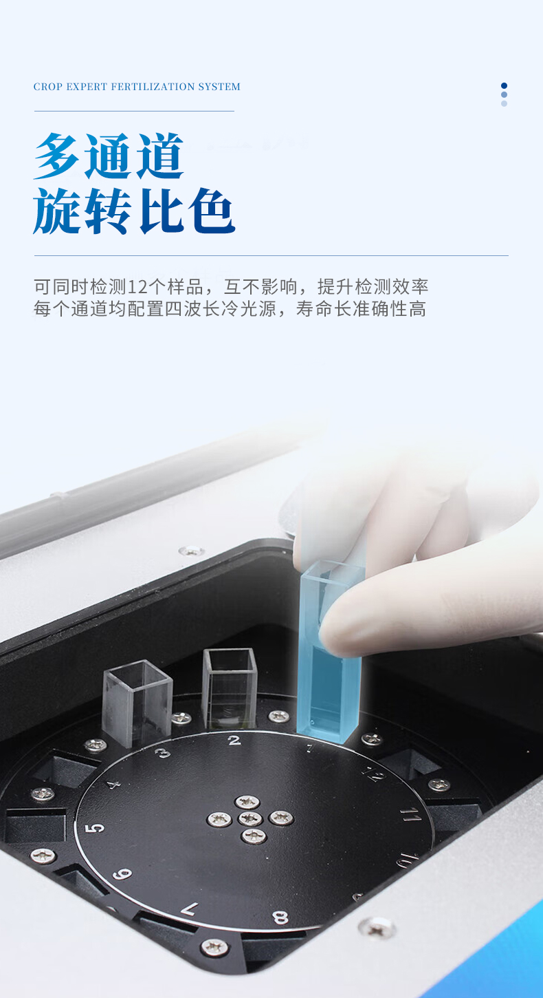 4、采用精密旋轉(zhuǎn)比色池設(shè)計(jì),光源一致性更加精確保證檢測(cè)精度。一次性可快速檢測(cè)12個(gè)樣品,極大提升檢測(cè)效率,降低檢測(cè)成本。