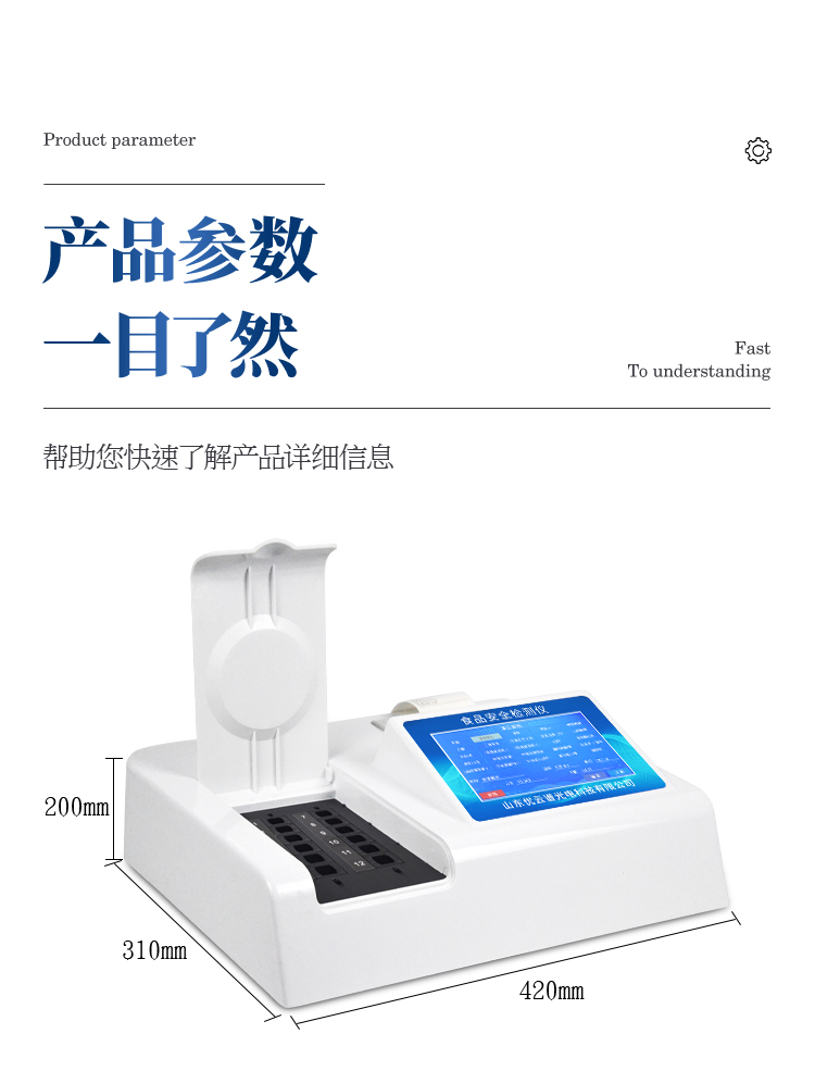可快速檢測各類食品中的甲醛、吊白塊、二氧化硫、亞硝酸鹽、雙氧水、硼砂、農藥殘留、乳及乳制品中蛋白質的含量,儀器預留其他項目檢測程序和端口,根據日后需求可方便的自主增加檢測項目。