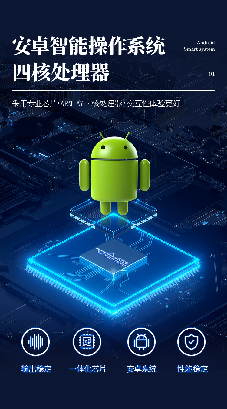 1、主控芯片采用ARM Cortex-A7,RK3288/4核處理器,主頻1.88Ghz,運轉(zhuǎn)速度更快速,穩(wěn)定性更強。