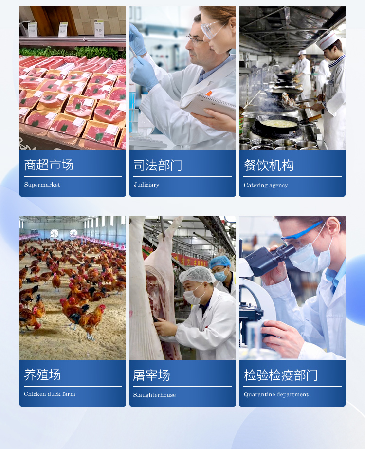 該多功能食品安全檢測儀為集成化食品安全快速檢測分析設備,廣泛應用于市場監管局、檢測中心、衛生監督部門、農業部門、院校及各單位食堂、食品肉產品深加工企業、商超市場、司法部門、餐飲機構、養殖場、屠宰場、檢驗檢疫部門等單位使用。