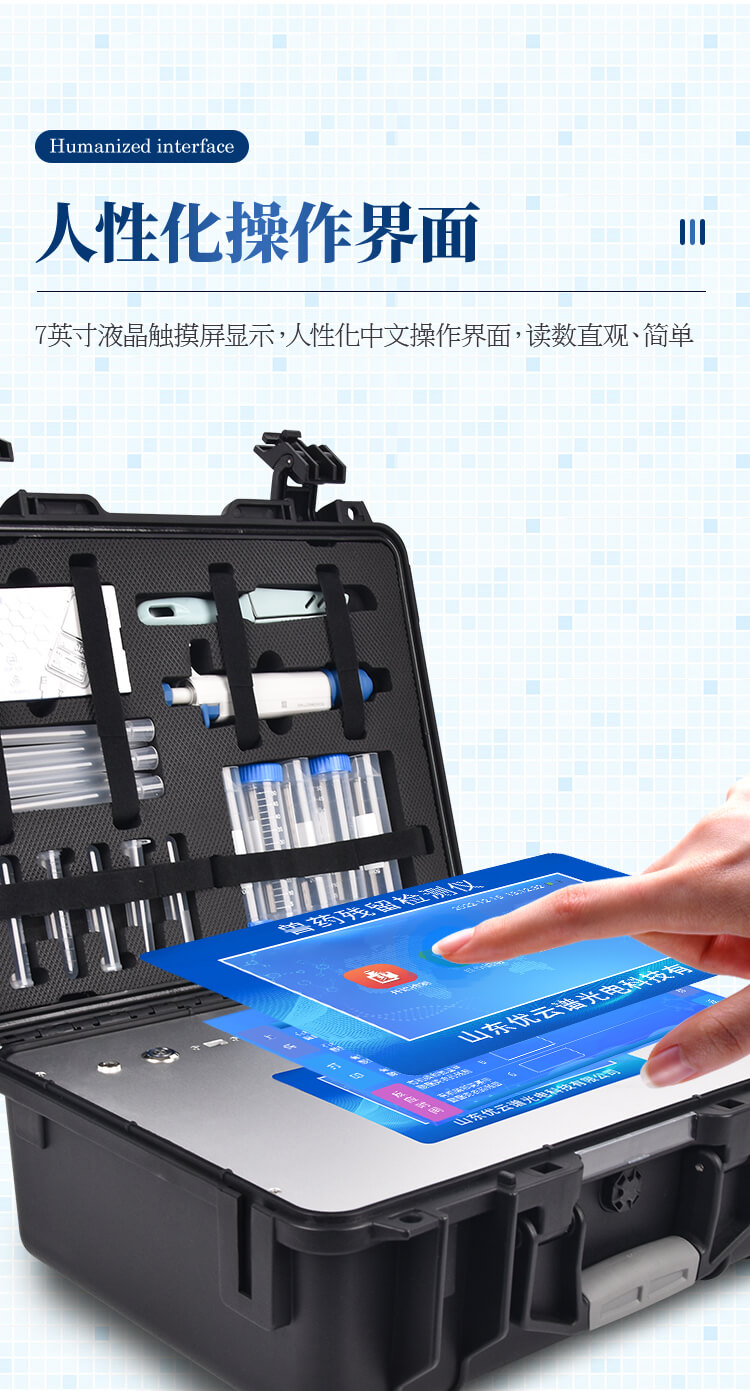 5、一體化便攜式快檢設備,滿足現場及流動檢測使用需求,能夠在同一軟件下實現所有檢測項目的檢測,并可通過同一窗口直觀顯示檢測結果。