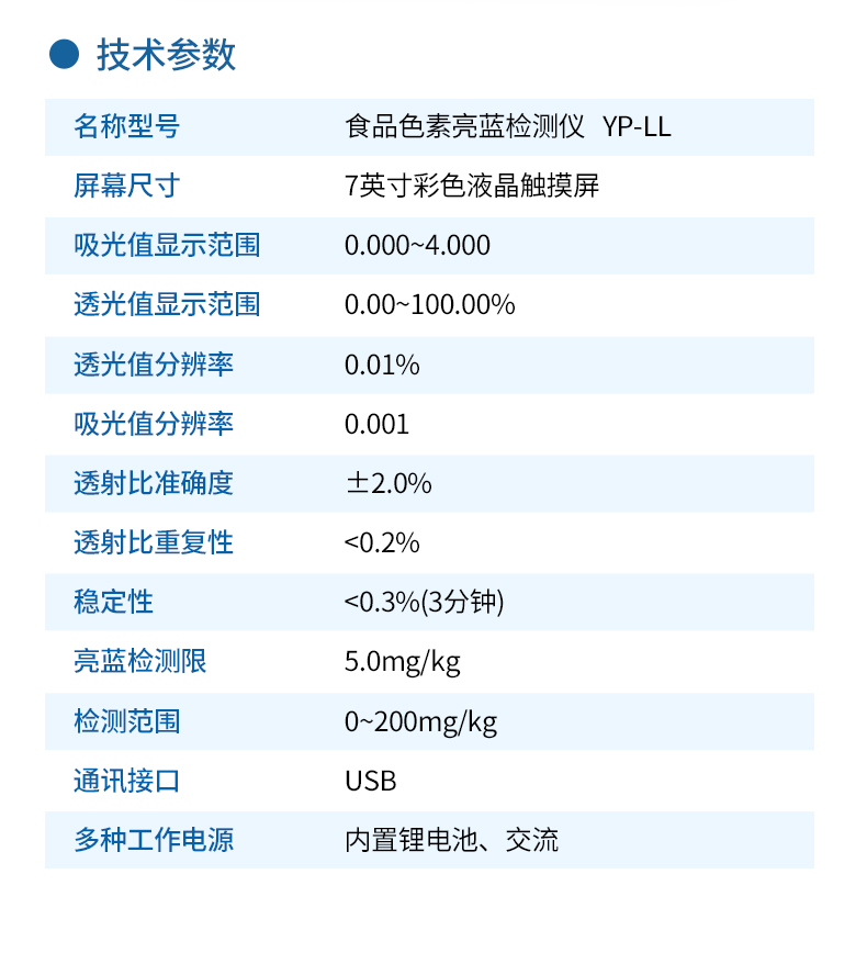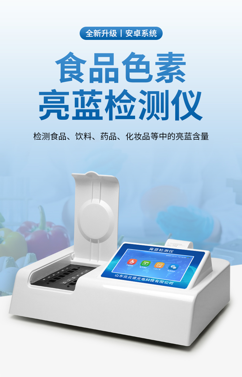 亮藍檢測儀,主要用于檢測食品、飲料、藥品、化妝品等中的亮藍含量,?具有操作簡單的特點。亮藍,又稱為誘惑藍,是一種常用的合成食品著色劑,廣泛應用于食品、飲料和藥品中。通過亮藍檢測儀的檢測結(jié)果,可以看出這些產(chǎn)品中的亮藍含量是否符合國家和國際標準,從而保障其安全性和合規(guī)性? 。