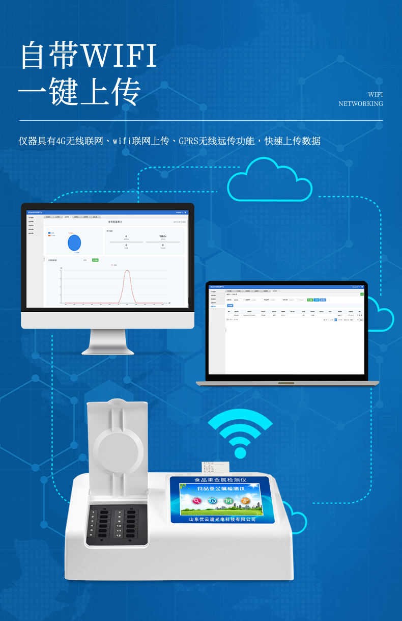 10、支持Wifi網(wǎng)絡(luò),數(shù)據(jù)可局域網(wǎng)和互聯(lián)網(wǎng)數(shù)據(jù)上傳,檢測(cè)結(jié)果直接傳至食品安全監(jiān)管平臺(tái)。進(jìn)行區(qū)域食品安全監(jiān)管及大數(shù)據(jù)分析處理,檢測(cè)區(qū)域食品安全長(zhǎng)短期動(dòng)態(tài),達(dá)到食品安全問題預(yù)估、預(yù)警