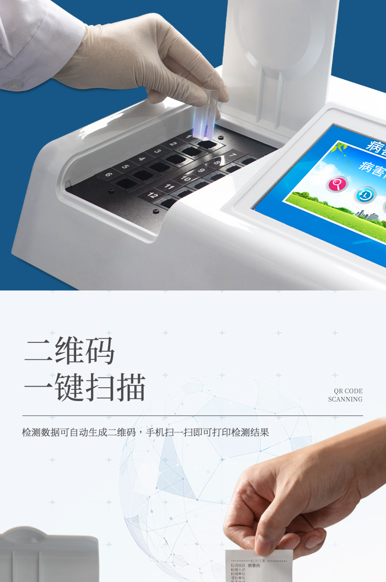 可快速檢測病害肉、組胺、揮發性鹽基氮,儀器預留其他項目檢測程序和端口,根據日后需求可方便的自主增加檢測項目。