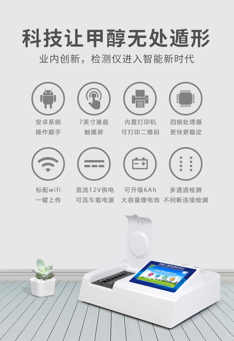 檢測項目:可快速定量檢測各類酒中的甲醇的含量,儀器預留其他項目檢測程序和端口,根據日后需求可方便的自主增加檢測項目。日后可升級為檢測,水產品,肉制品,面制品的綜合類型儀器。